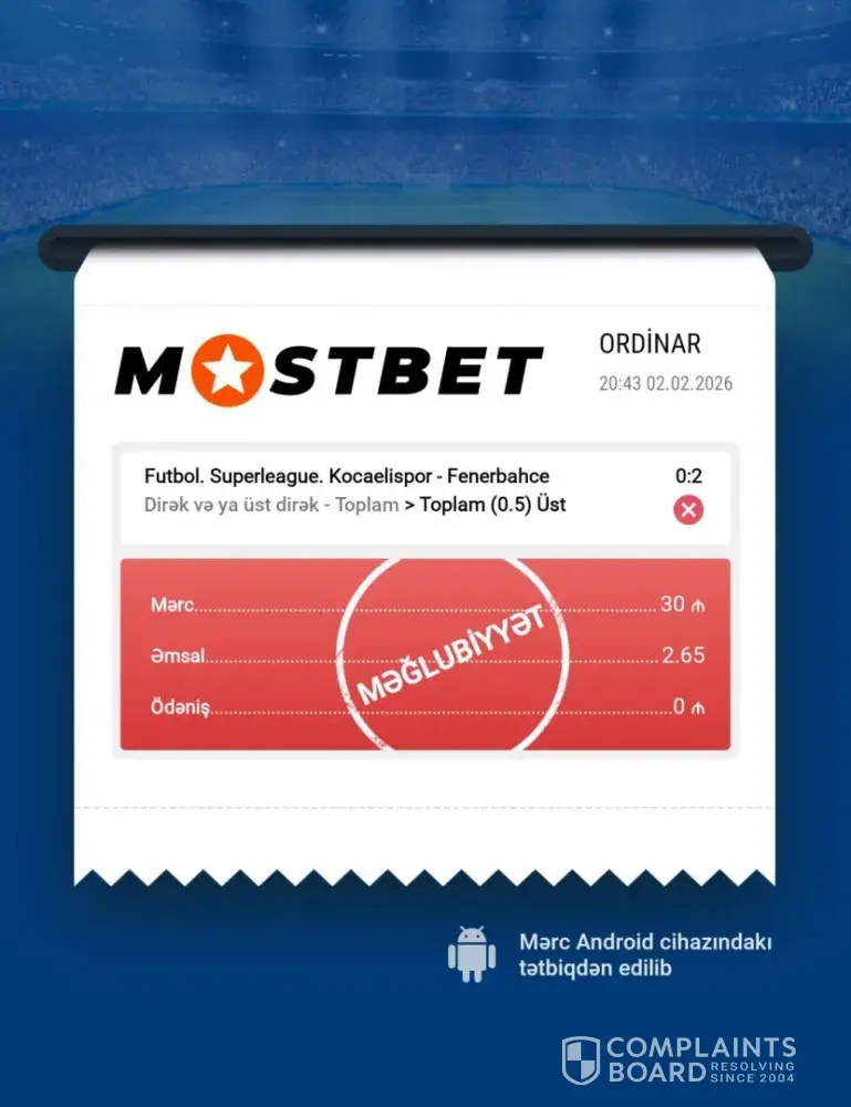 ​I am reporting a case of fraud and rule manipulation by Mostbet. On Feb 2nd, 2026, I placed a "Hit the woodwork" bet (ID 1438295454). Official beIN Sports footage and Opta stats confirm the ball hit the post. ​During my chat with support (Operator Elxan), he first sent me the official Paragraph 12 rule, which states that "balls going out of bound...