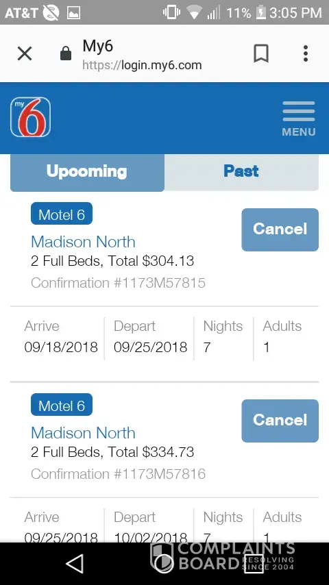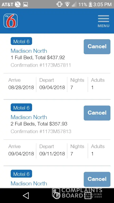 Our Baseball bowling league booked 6 rooms to stay at 4900 Circle 75 Parkway, Atlanta GA 30339on Saturday August 18, 2018 to attend the Atlanta Braves baseball game on Sunday August 19. Our league secretary (Trisha Chumley) booked the rooms through booking.com. She was the first to check in. We arrived about 15 minutes later and our reservation could not be found. We spoke to the desk clerk, the motel manager and then to someone at motel 6. After 2 hours and 10 minutes we found out that the reservation for the other 5 rooms was cancelled by the person registering her. I have never had a problem like this. While waiting in the lobby waiting to find out what was going on, at least 10 other people checking in came back to the desk because their key did not work.