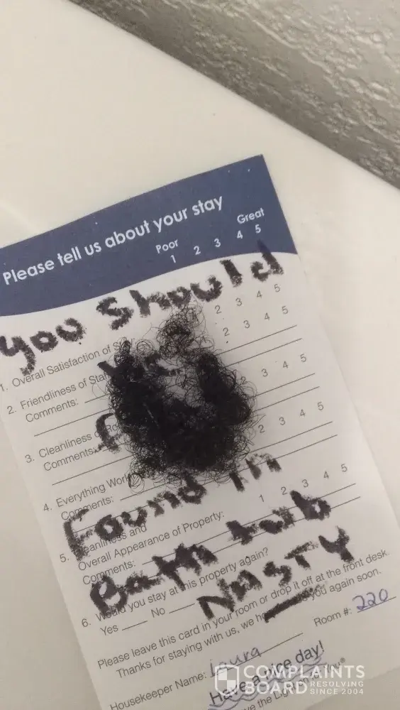 First of all they put me in a room which was not clean. Then they moved me to another room that was a non smoking room. It had cigarette burns in the covers. There was black mold all in the shower floor. It is a health risk. And i have copd and asthma. Breathing this can kill me. Also the air. /heating unit wailed like it was dying. All of this cost me near 60 bucks.