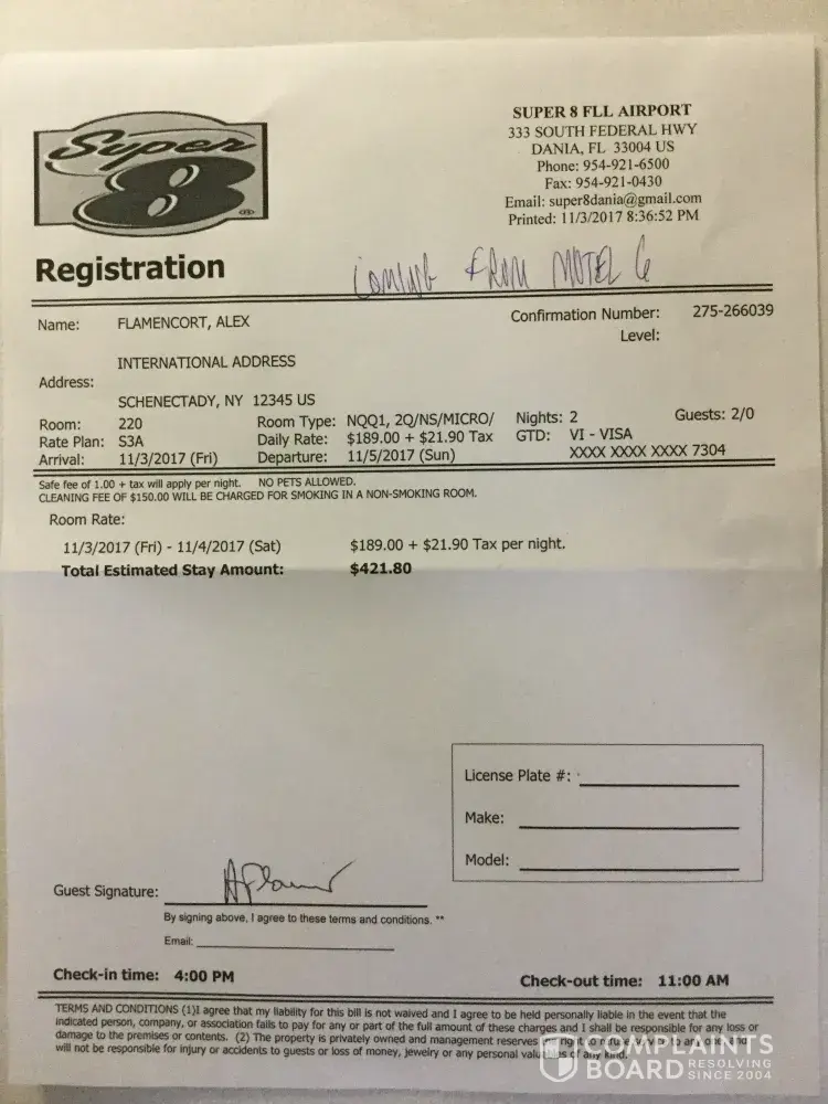 For this trouble the Motel6 put us through we had to pay extra 237$!