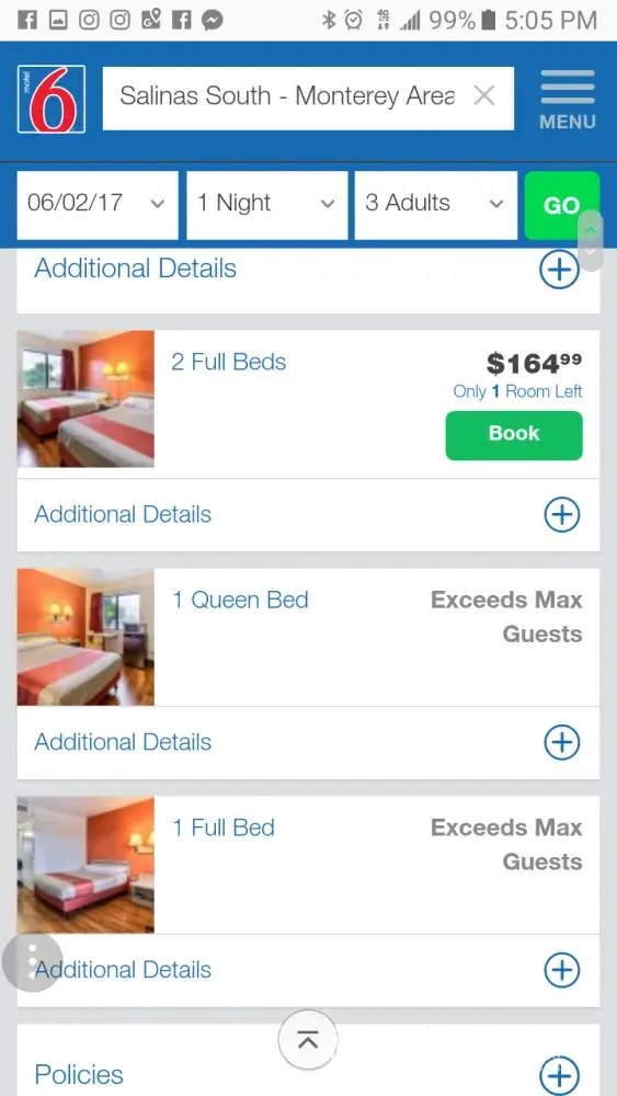 On May 26, 2017 I booked a room at the Motel 6 at 6311 Central City Blvd, Galveston, TX., before we went on our cruise.