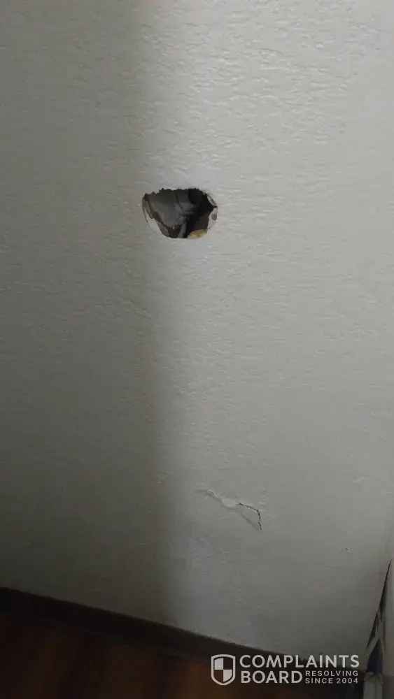 When my husband and I walked into the room it had a bucket under the air conditioner (which my husband had to empty), it also had water on the floor, holes in the wall, door jam dented in and rusted, chair had stains on it, toilet seat not on completely.