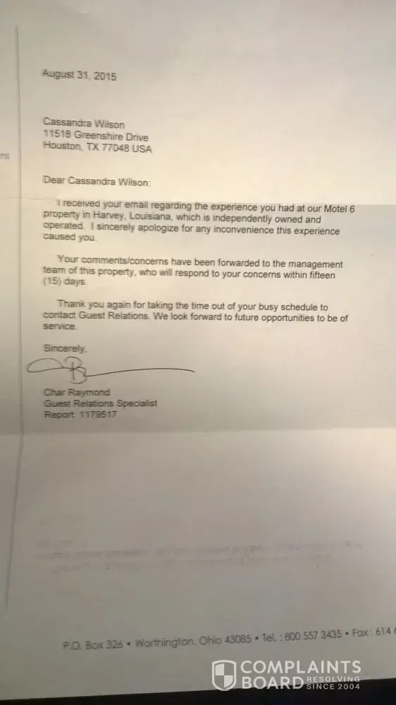 I feel very wronged by the way I was treated, and as a result I thought it is necessary, as do several others who stay at your chain, to write you this letter of complaint--a first for me. I appreciate you addressing this matter.