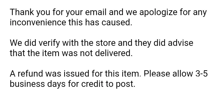 Desired outcome: Refund my money. Motherhood Order MH892849
