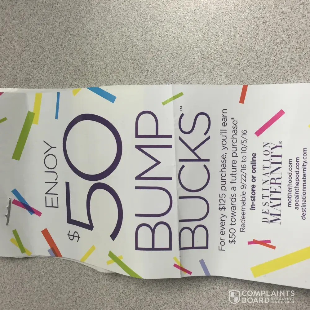 Well, to start with my experience, I went to Simpsonville Outlet mall in the end of August to buy some maternity wear at Destination Maternity store. This is a sister store of Motherhood Maternity. I bought clothes worth $119 and with taxes it came to total $ 127.I was given a $ 50 worth Bump Bucks coupon that is valid to use from Sep 22, 2016 thru Oct 5, 2016. I was also told that I could redeem this coupon in Motherhood Maternity store in Oxmoor mall. So, when the date came to avail my coupon, I went to Motherhood Maternity in oxmoor mall to buy some more. When I entered the store, a lady came by to greet me and asked if I needed any help. I showed her the Bump Bucks coupon and confirmed if I can use it here. After she said that i could, I started shopping and went for billing. At the billing, another lady said that i could only use the coupon if I spend additional $125 that day (the former lady with whom I confirmed was nowhere to be seen). I misunderstood her thinking that I had to spend again since I had not bought this coupon in their store.