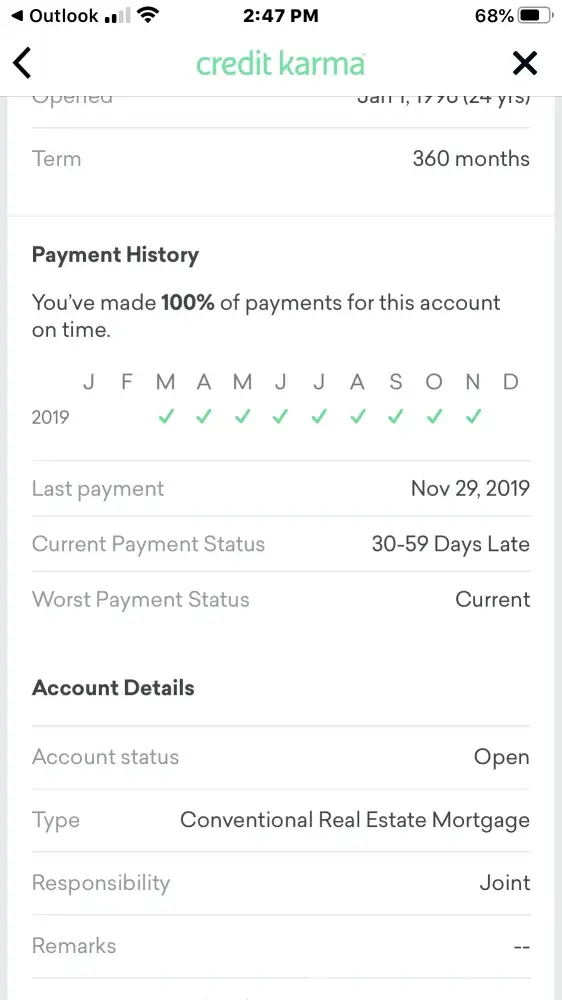 My credit report says I have not paid since November 2019 but I have paid.