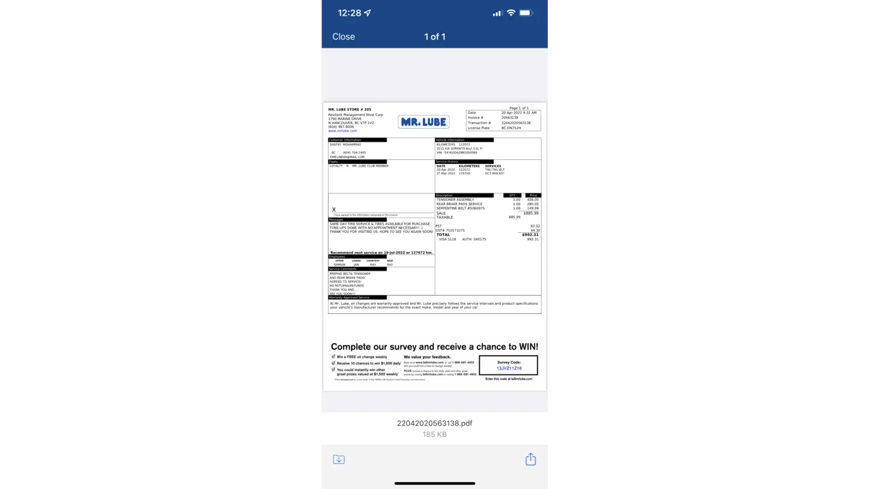 What a service Mr Lube has become. The address of Mr Lube I went to was “793 Spadina Rd, Toronto, ONâ€