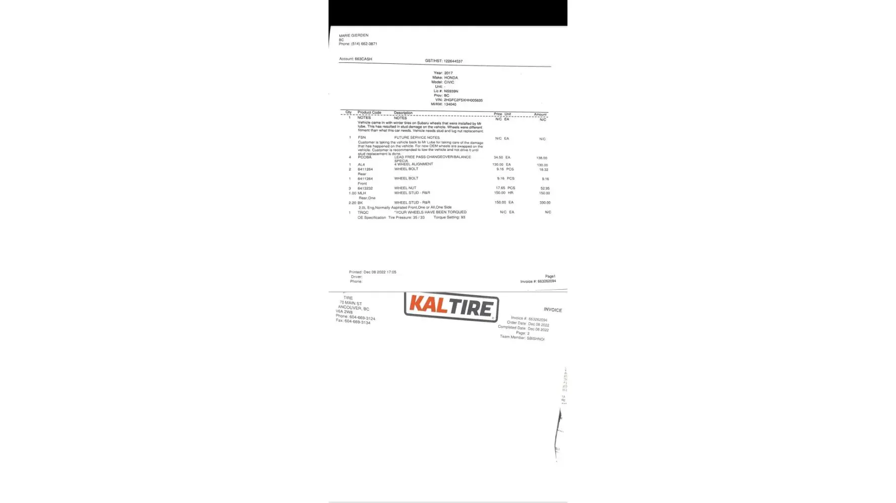 On November 7th, 2022 I went to your Kamloops location on the North Shore and was appalled at their customer service. I was told it would be a 3-4 hour wait to get into the shop, so I waited since I desperately needed to get my tires on. I reached the shop 7 hours later, which would have been okay if they had changed my tires. My car apparently needed a wheel key to take off the lug nuts, I, unfortunately, was never told this even when I had gotten the vehicle. There was a mechanic there who had told me he could break them off and change the tires and I would just have to buy replacement lug nuts, which I gave him the go-ahead because like I said, I was desperate. Then I heard one of the other mechanics say to a different guy that "this was a complete waste of time". so they put my hubcaps back on and told me that they cannot swap my tires and I would have to find someone else to break them off or find a wheel key. When I explained to him that I was never informed all he could say was "oh, well we can't do it". After waiting for that long I was extremely frustrated since I had spent from 9:30 am to almost 5 pm in a line to be told that they couldn't do it even though there was a mechanic willing. I am extremely disappointed and will definitely not be going back.