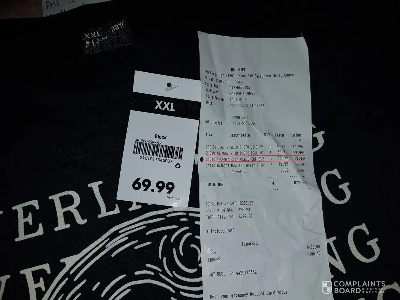 This is the third time that i am writing to you, with no response after the first two times. i would like to bring to your attention the pricing of a garment at the Mr Price store in centurion.