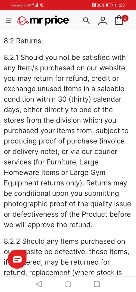 I bought a bag at KwaMnyandu shopping center on the 29th of December, I didn't open the bag until the 31st of December and I couldn't go back to KwaMnyandu to return it because I'm not at UMlazi at the moment. The bag is torn by the zip. This bag is a reject. I'm honestly disappointed. This is the first time I'm experiencing this issue with Mr price. I would really like my issue to be resolved ASAP!