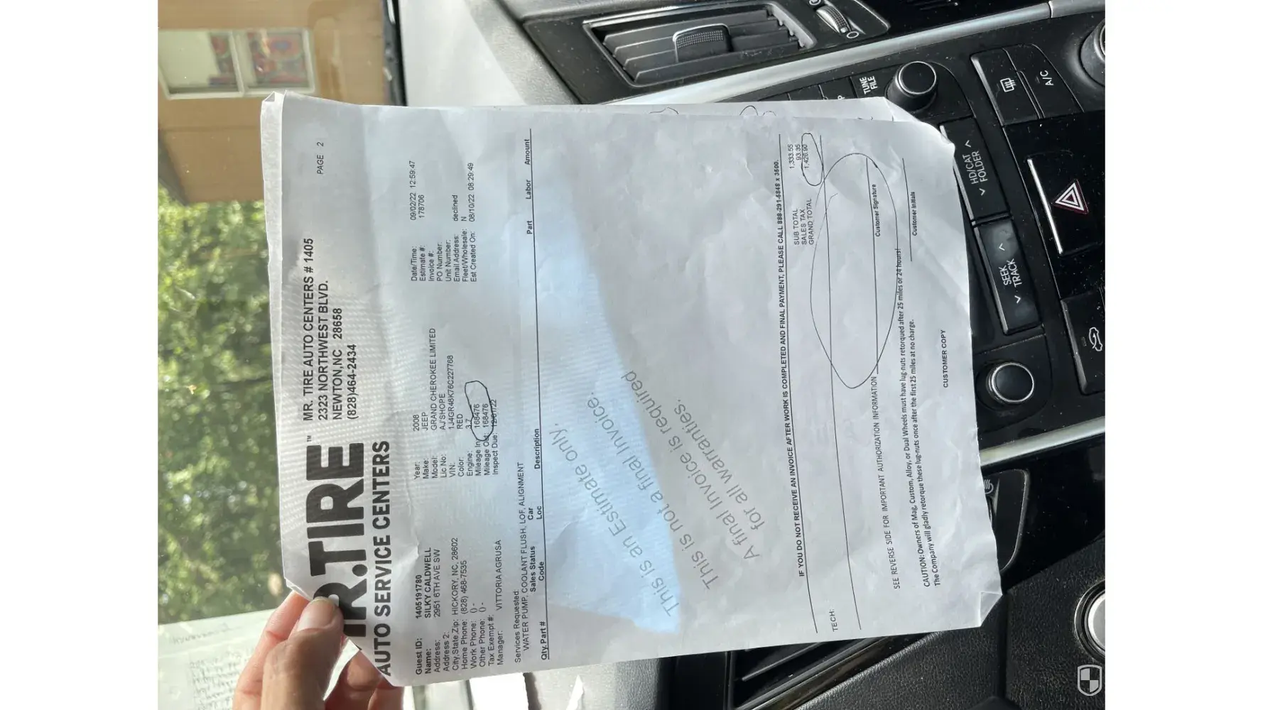 Bill asked did I want him to take it to Newton store with him. Evidently he hadn’t worked at Hickory location for awhile. Yes, please I need Jeep. I’m losing everything and every chance at owning anything ever again with each day that goes by. Presented with yet another unauthorized and unsigned estimate/bill of $1,426 Bill will not give it back.Did I mention He said it’s a good Jeep how much are you asking for it? Lol.