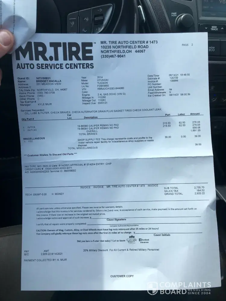 Read full complaintAbout Mr. Tire