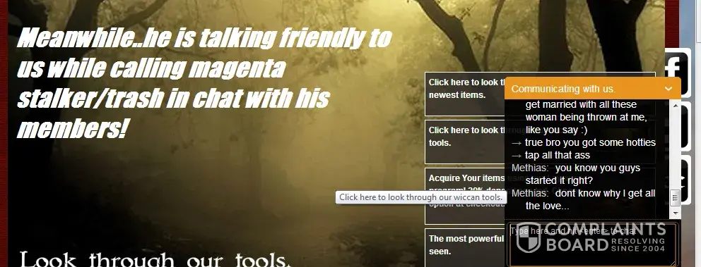 Master Methias Chinoa is full of BS. His real first name is Panayiotis but he goes by Peter. He lives with his parents at the address where the business is registered. He is 34 years old. He is a painter/handyman. He has used the Creepy Hollows forum site to give his group third eye communications and Mrs Gula false reviews to build popularity. Two forum ids he used for this are timegate888 and spiritcatcher. Read the discussion on Mrs Gula and Third Eye and look up their posts to see proof of this. All of his bullying, lies and deceit are coming back on Methias now. Karma always finds a way. Methias will scream stalking from women he says he has sexually refused, he will accuse other sellers of trying to discredit his site, he will deny or try to explain away what is being posted. What is posted here is only a small amount of the proof that has been gathered.