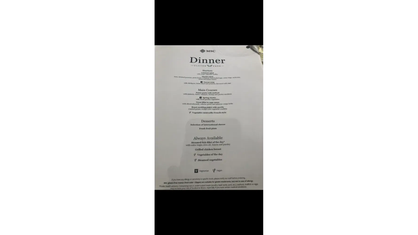 Gluten free food options on board msc world europa