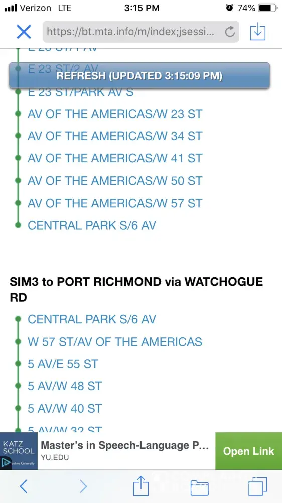MTA sim15/ richmond rd & midland ave express bus stop removed