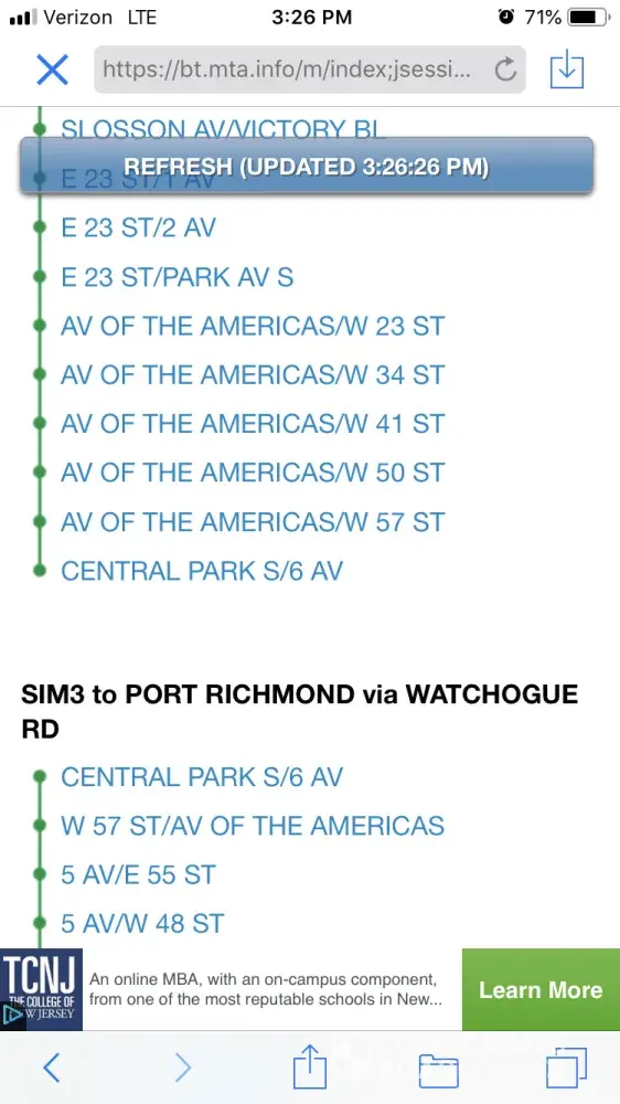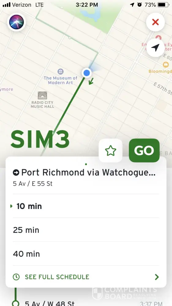 stop in time to catch my bus (SIM3). Well boy was I in for a rude awakening when it didn't come for the next 50 mins. In the interim, 5 SIM8s passed by (I guess it was a slow day considering the 8s pass by every 5 mins an hour). Everyone waiting at my stop for the SIM8 was serviced for each stop, yet I stayed standing at the stop, braving the rain, wind, and cold, while I waited for my bus. I checked my app to start. It said it was 8 mins away at 3:09 and the next was 23 mins away. That's a large time gap if you ask me, but I didn't mind knowing I'd be on the bus at 3:17. This was very accurate to the time that was listed on the stop's timetable itself that said the bus should arrive at 3:18. So I waited knowing my bus should be arriving shortly. At 3:14, I check again. The bus said it was 3 mins away which was right on track with the initial time that was stated. However, at 3:15 I begin to get skeptical of the bus coming so I checked another app to see that there was not A SINGLE BUS COMING ON THE MAP. Already distressed due to the disappointment and lack of punctuality the MTA constantly displays, I waited for the second bus (that the app said was on its way) to arrive. At 3:22 my app said it was only 10 mins away. This also would have been correct with the times displayed at each stop since my stop showed the second SIM3 should be by me at 3:33. Now entirely wet from the rain and shivering from the cold wind, I check my other app at 3:26 to see where the bus is on the map. And YET AGAIN, there was NOT ONE SINGLE BUS ON THE MAP. I go back to my transit app to see if any of the times updated and soon realized that in fact, none of them were updated AT ALL. It said that the SIM3 was still 7 mins away. Now at this point, I am filled with rage. Not only did I leave work early to catch an early bus home, but I was depending on that bus to be there. I had a very early flight that I had to make and when you are depending on transportation to get you one place to another, you'd expect the service to be accurate and accountable. Well, the MTA, specifically with its SI routes and services, has displayed absolutely nothing but poor timing, lack of care for its customers, and untruthful timetables. So as I CONTINUE TO WAIT FOR 38 MINUTES FOR A SIM3 TO ARRIVE, I check my app to see that not 1, but 2 buses BACK TO BACK will arrive at the stop in 3 mins. Well 3 mins later can you guess what happened?! My bus DIDN'T SHOW UP! What a surprise! WOW! At 3:44, two buses were shown to be 0 mins away and do you think that they were? OF COURSE NOT. At 3:48 my bus FINALLY arrived and not only did I have to flag him down as he drove past us, but I had to run into the middle of the street in order to get on the bus. So all in all, I'd say my experience taking the bus today has been just nothing short of predictable and everything from disappointing to unacceptable. At this point I'd like to ask you, what does it take in order to be serviced by the SI Express Bus? Must one live on the South Shore in order to feel like a valued customer? It's evident that everyone from the South Shore is being serviced and their routes are being changed and people are having buses come often, but what does that leave for the rest of the ENTIRE ISLAND? Are we not valued enough? Do we not live far enough? Is our commute back and forth every day for 2 hours day and night making it 10 hours a week commuting not hard enough already? Are you trying to make it harder? I'm so curious to see what the MTA thinks. Because it's clear, especially now, that they most certainly don't think at all. Are buses being cut for no reason? Are drivers taking longer breaks because they do not want to pick up passengers? I refuse to accept the excuse that the buses are late because of inclement weather because truth be told, in rain or shine, the SIM8s arrive all the time. And so does every other bus BUT THE SIM3. Changes must be made. Management must be changed. Customers will no longer ride if they have to wait for 1 hour!