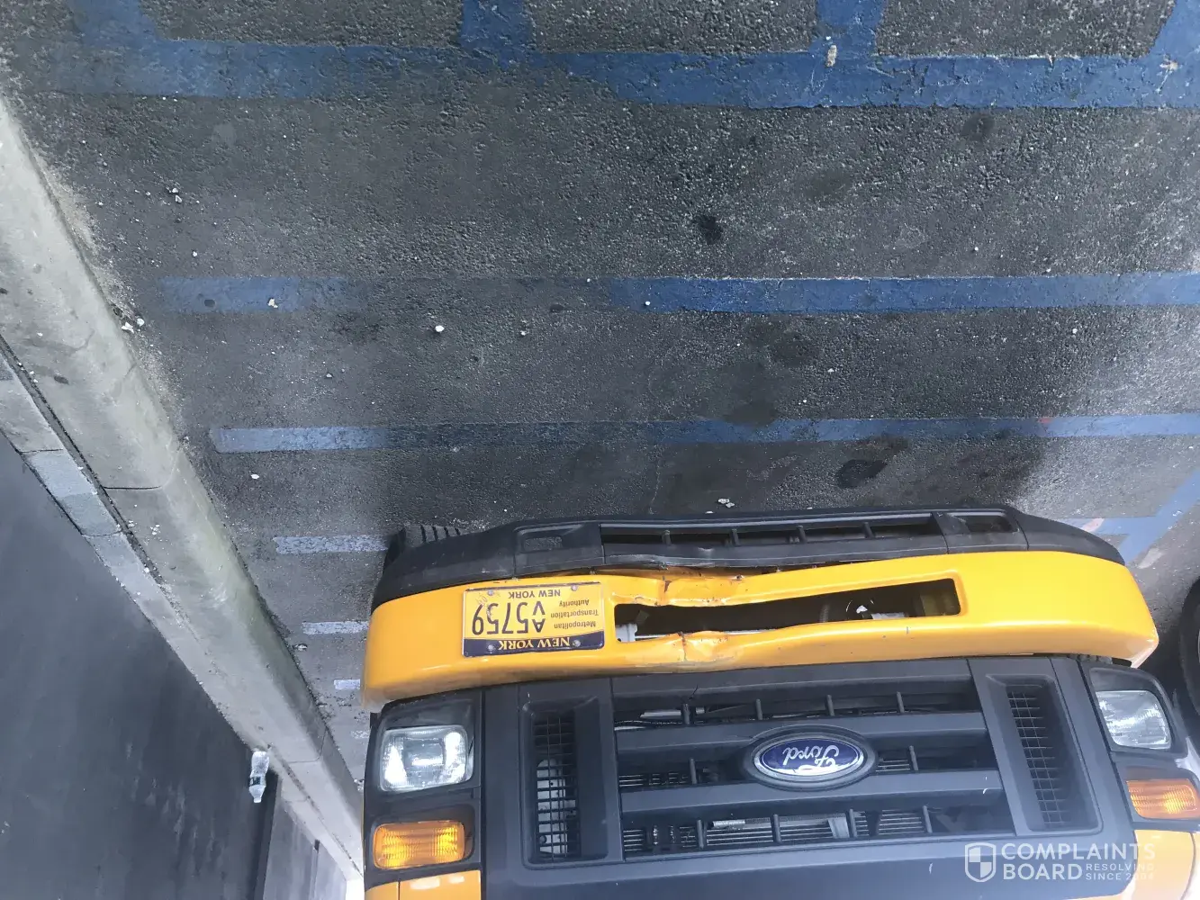 This van has been here at least 3days...notice the blue lines under the van. These spots are striped, so if a HANDICAP van parks CORRECTLY next to it, there is room for its ramp to be deployed. Your employees DISRESPECT for local handicap citizens is ATROCIOUS !