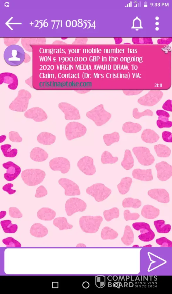 I have received a message on my mtn number from Uganda that I have won $1, 900, 000GBP and to claim that I should send an email to the provided email address. Please help me understand and verify if this award is true and how best I can receive these funds. My email is nanyongagloria5@gmail.com.