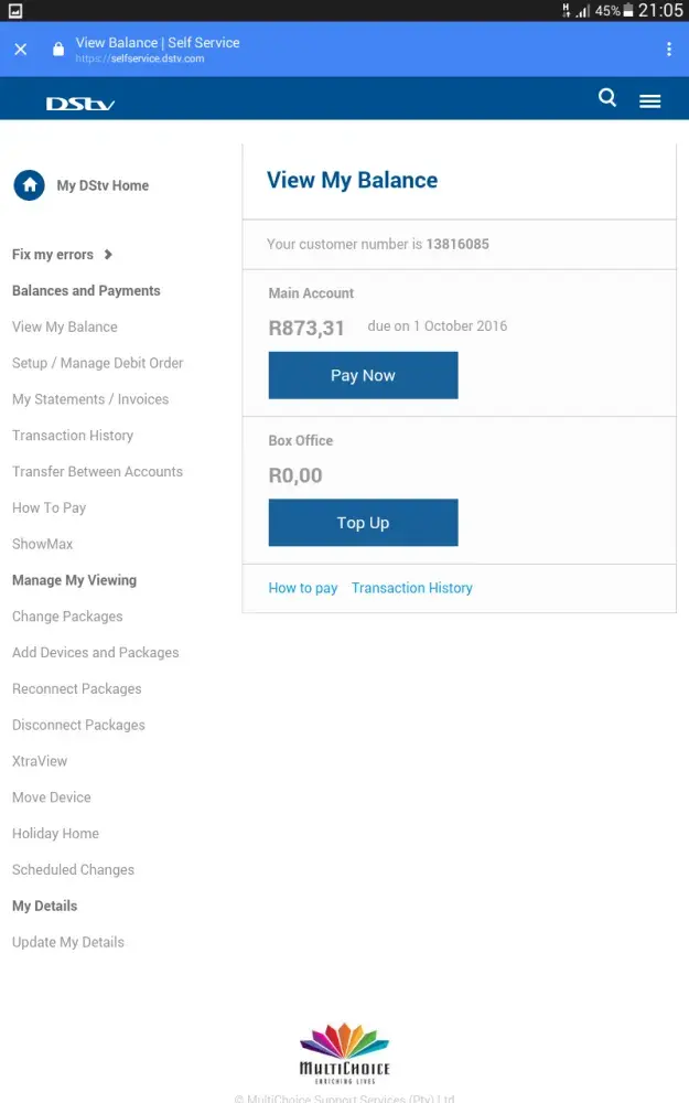 MultiChoice Africa / DSTV account debit with no explanation or feedback