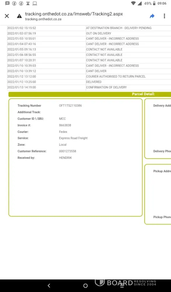 Last night I was told that they new address was given to on the dot couriers for delivery today