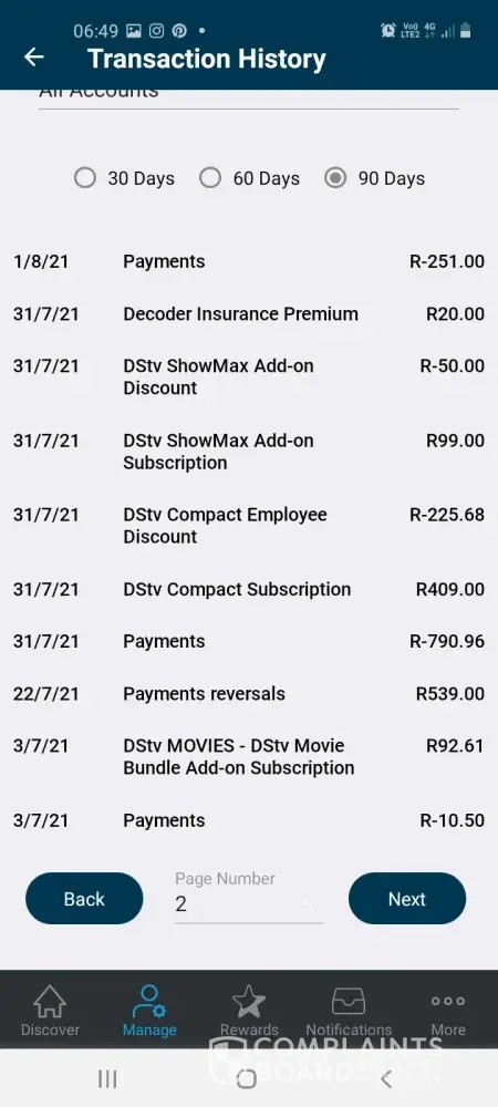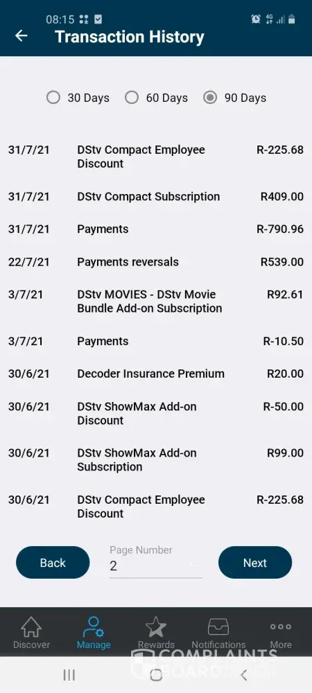 On the 03/08/2021 DSTV again tried to debit my banking account for the same amount of R469.79 but was immediately reversed due to insufficient funds, as you can see on the bank statement there was funds in my account when the debit went off on the 30/07/2021.