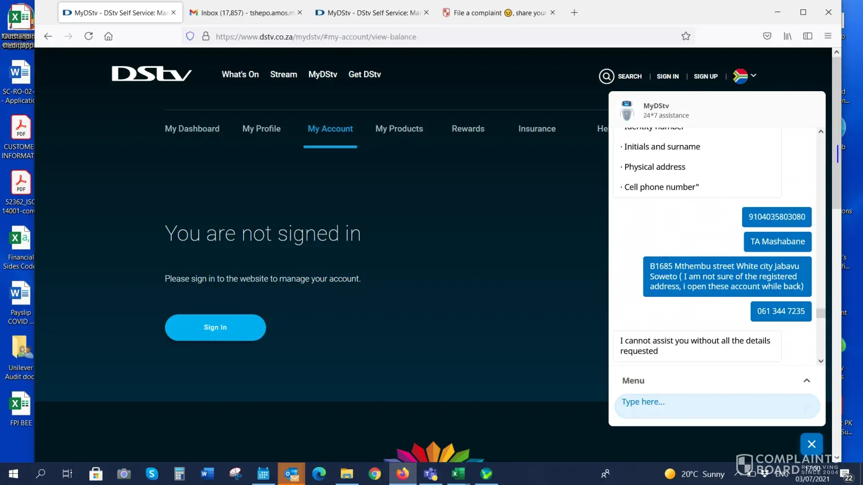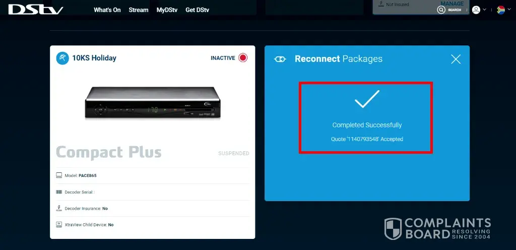 Desired outcome: Connection of service and feedback on the lost days due to dstv negligence