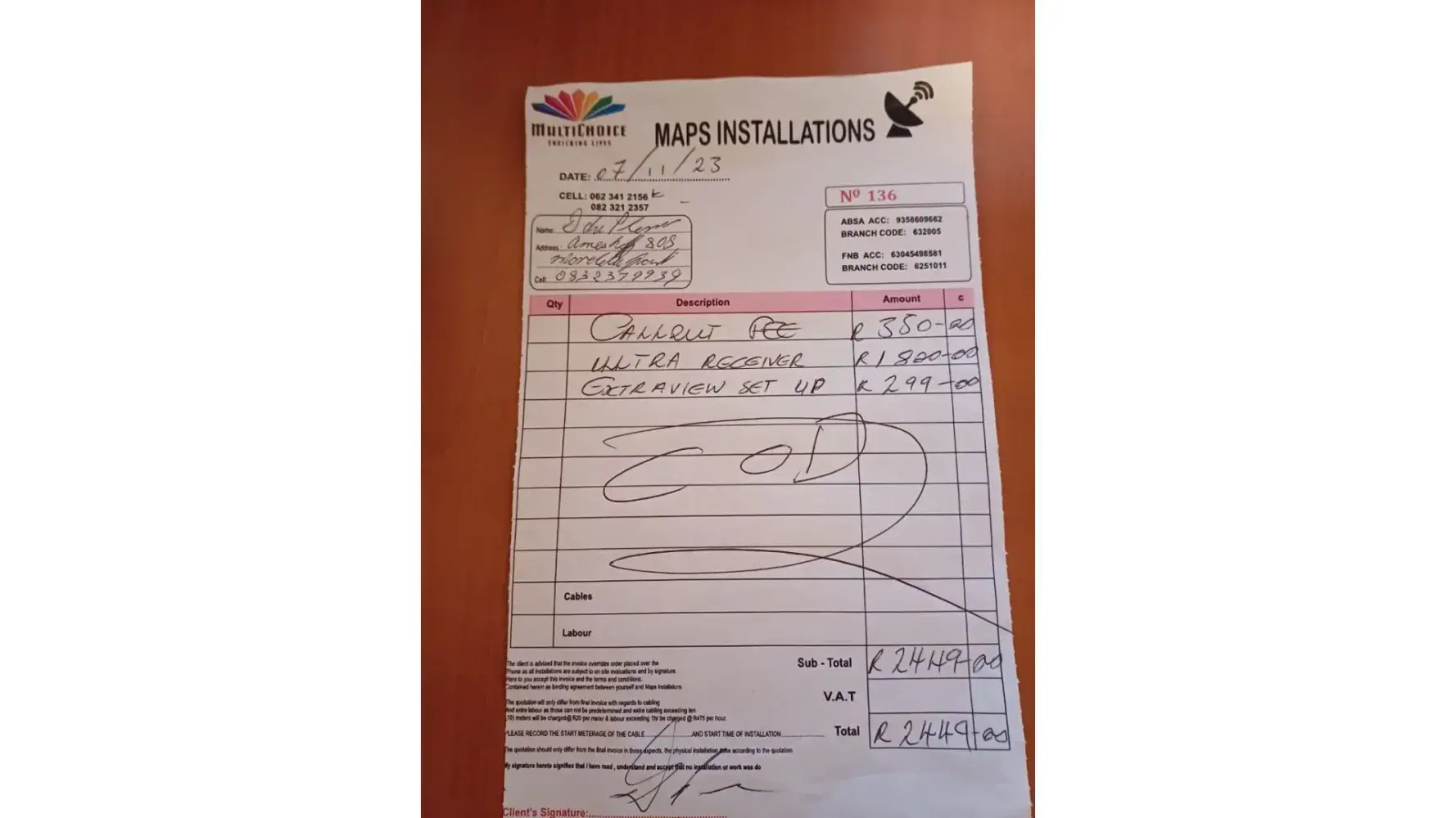 Maps Installations installed a new LNB receiver and charged me R 2449.00. My problem is the price of the LNB receiver which was R1800.00. On the invoice they showed an Ultra receiver. The normal price for it is around R450.00.