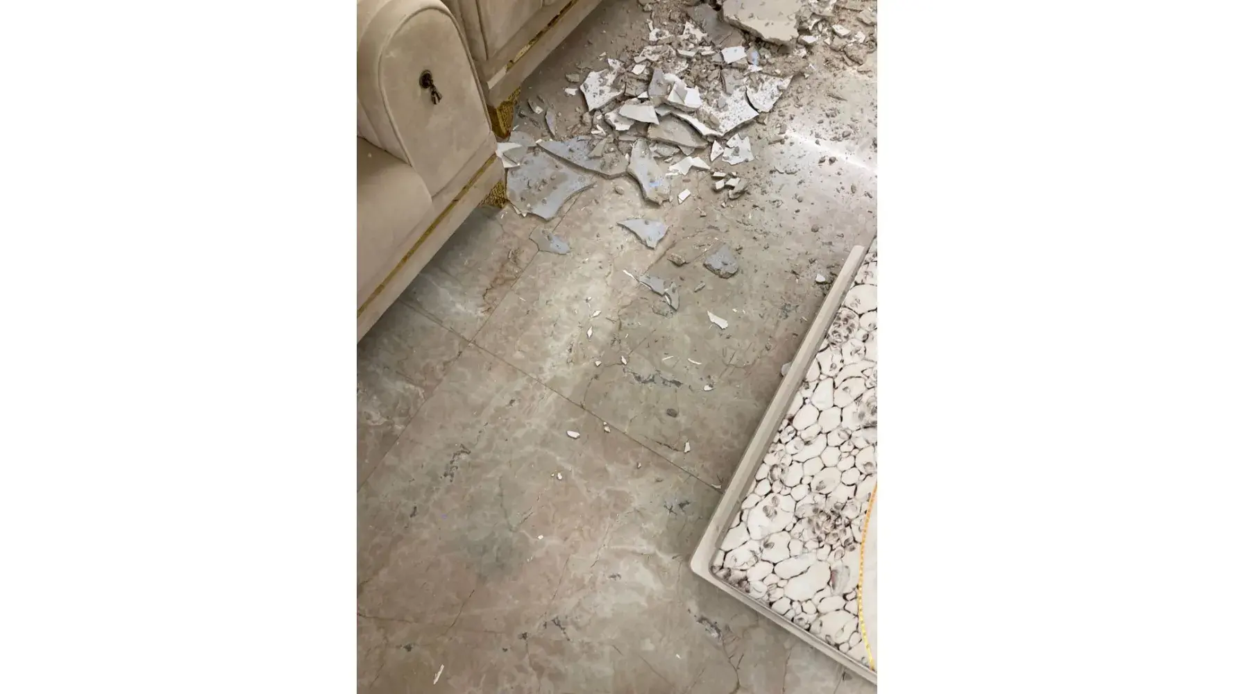 Desired outcome: He must compensate for my damage sofa ,ceiling ,broken tiles and laptop .Through authorized company rather his labor.
