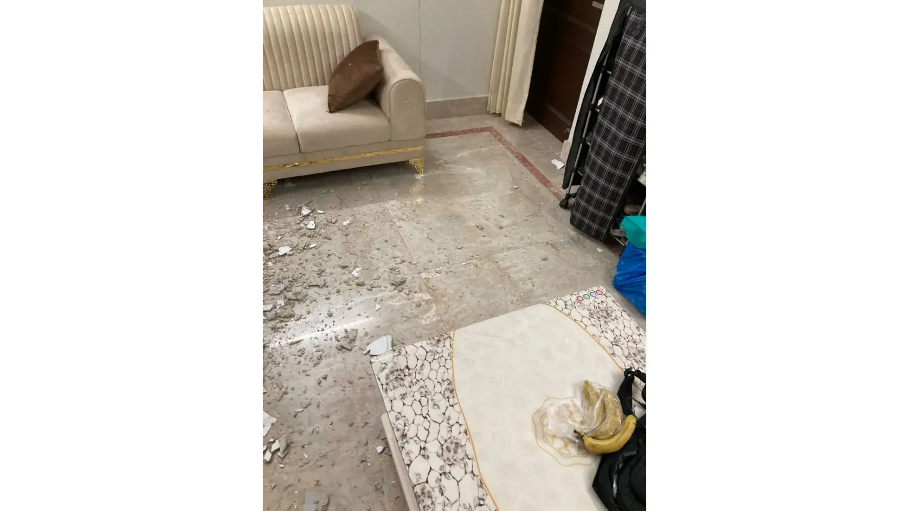 I am a resident of BE 179 First floor DDA FLAT Janakpuri, second floor i.e. BE 181 is owned by Mr. MP Sharma senior official of NHAI highly influenced and very rich person. I requested him to rectify the seepage issue on the flat due to his floor and do not start the renovation till my kid's exam but he ignored request and started lavish renovation from scratch. Seepage issue increased due to his renovation more and more but he did not address any of request today at 1800Hrs drawing room roof fallen while my son was seating in the drawing room, fortunately, he is safe. Even after my calls Mr. Sharma did not visit and send his labor to clean the room after some time his son came and threatened me if I complain to the police or MCD, I will stand responsible for more damage. Today his plumber RadheRAM quoted he advised him to change old water pipe and remove watertank from trace but sharma refused.