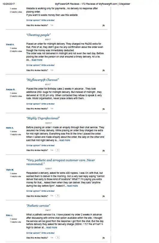 I think www.myflowergift.com is a cheap company without any policies and ownership. and may be fake to which takes money not not deliver on time and then provide refund n form of voucher to be used later.