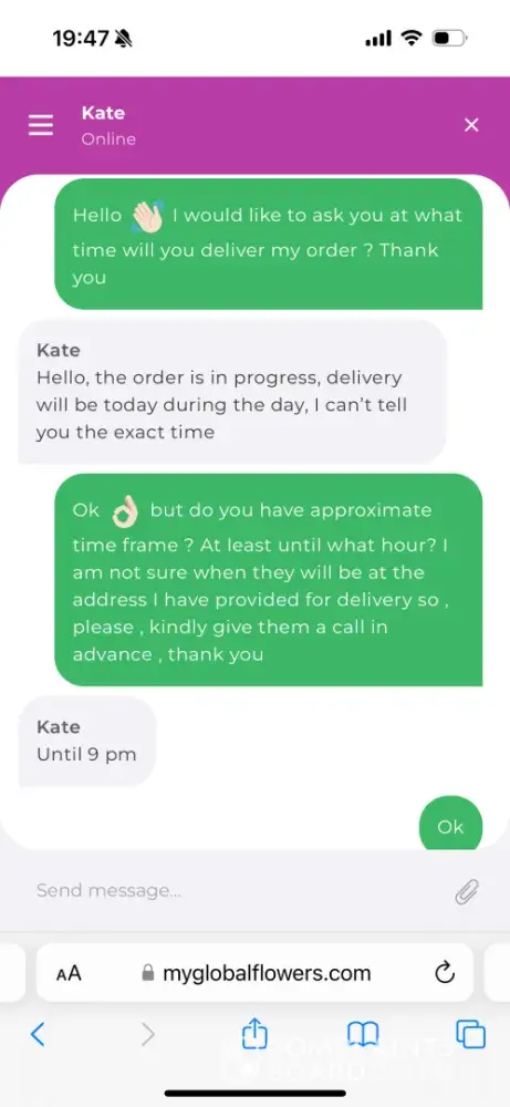 Overall, I would say that My Global Flowers is a company to avoid. They are not reliable and they do not provide good customer service. If you want to order flowers online, I would recommend finding a different company that is more trustworthy and will provide better quality flowers.
