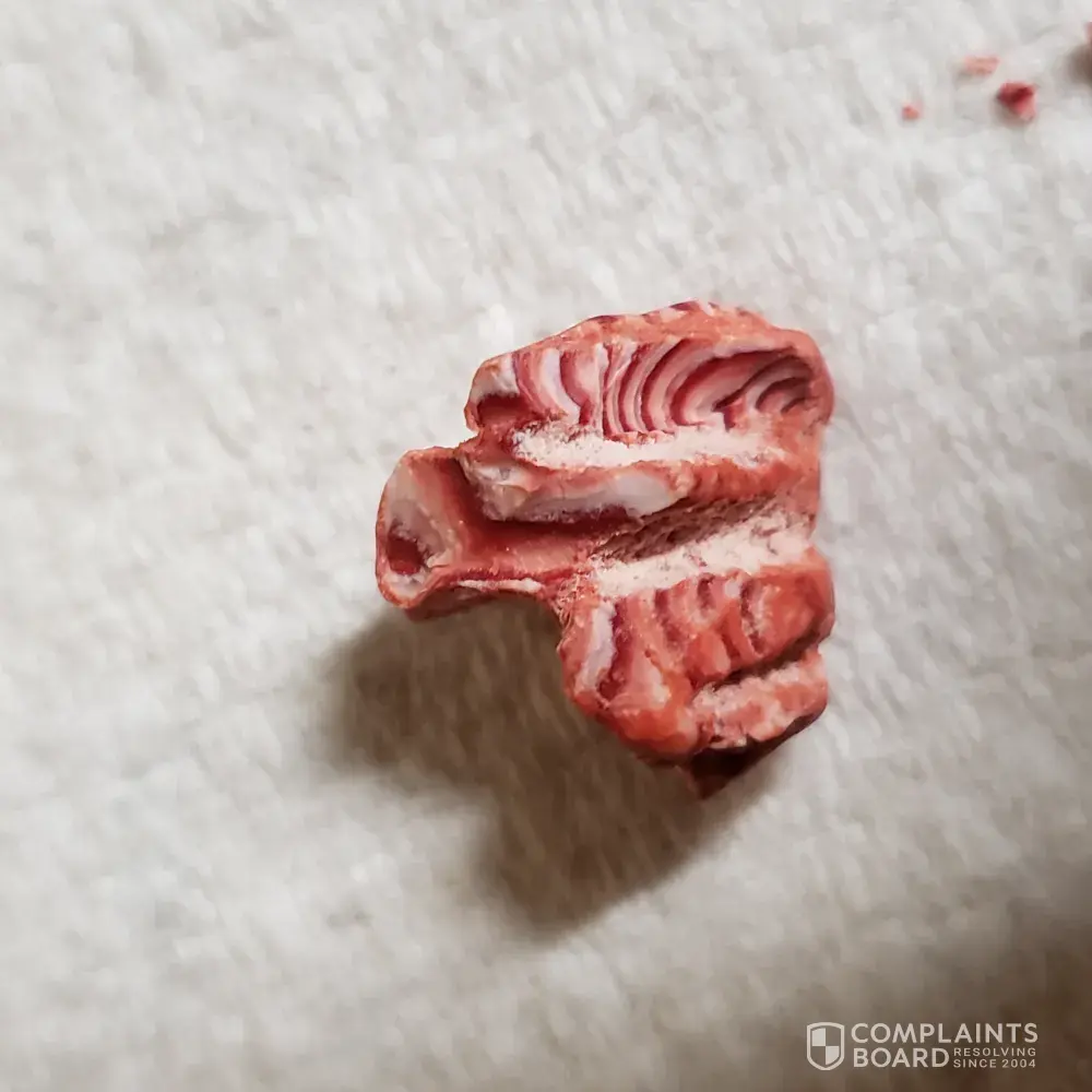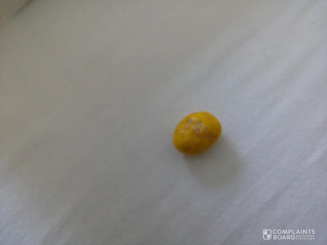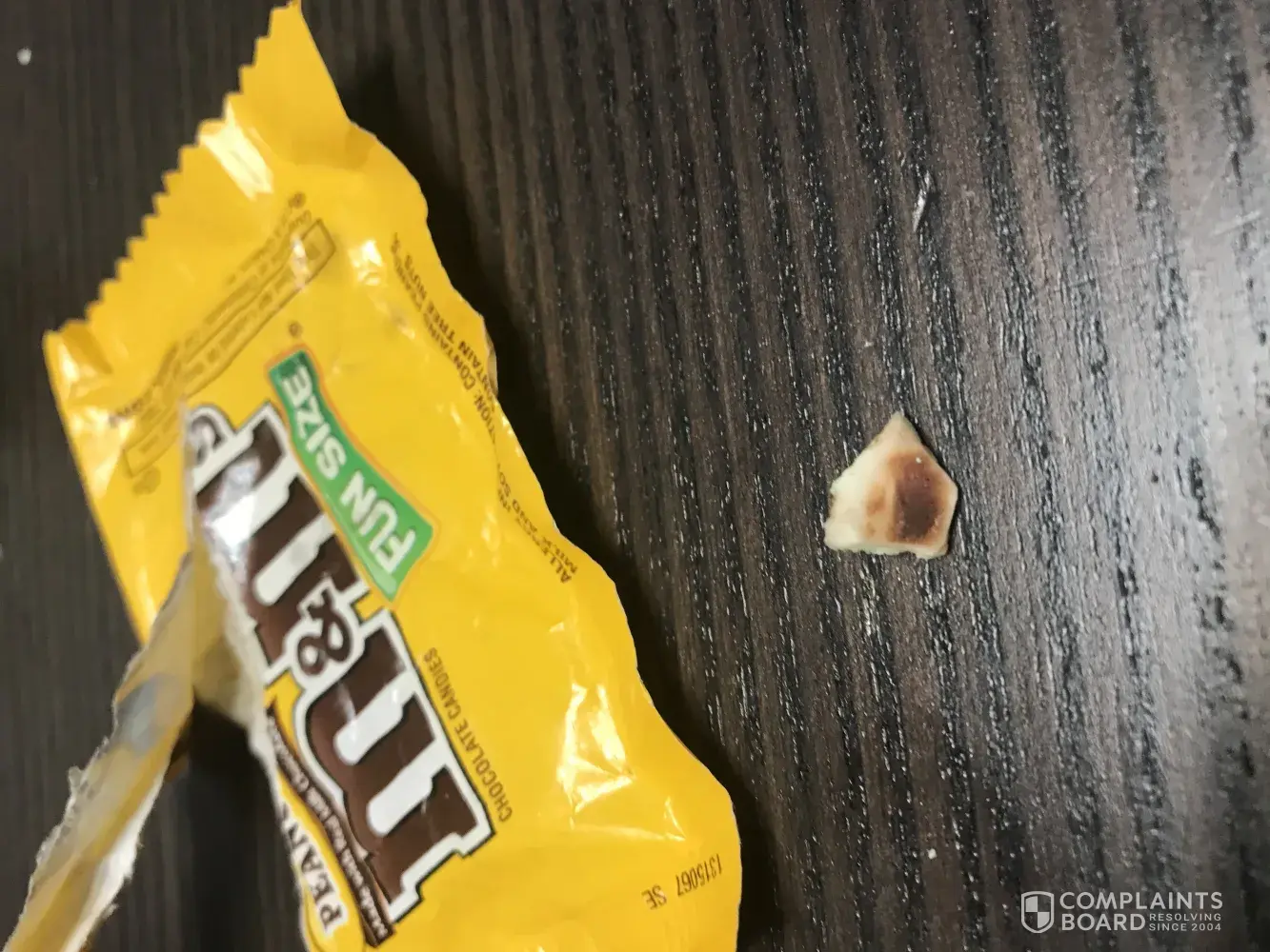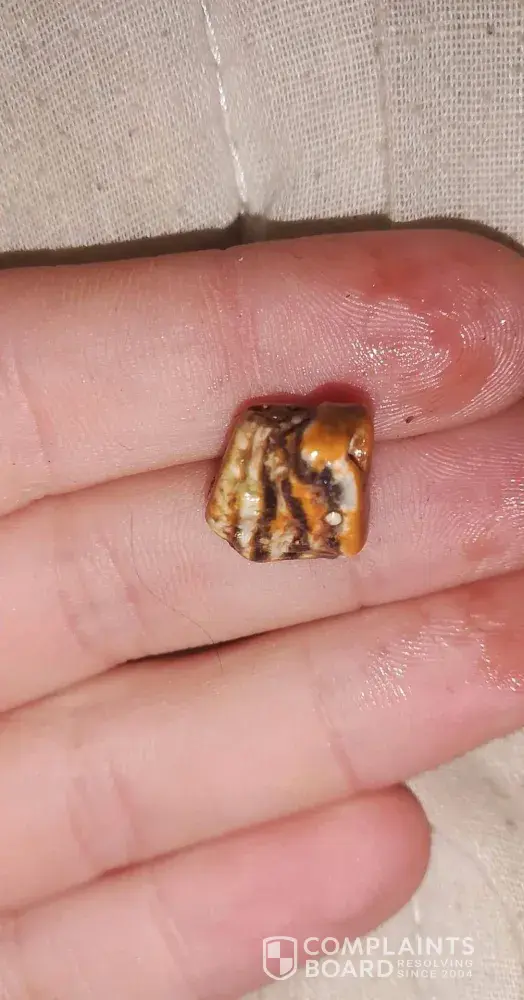 Hi I bought some m&m''s but after suckling on them till soft I chewed them and an object in the packet has broken the top off my front tooth. I looked for an identifying number on the packet but there does not appear to be one. I have attached some photos of the object I am very upset about it being my front tooth. If you require any more photos I am more than happy to send them.