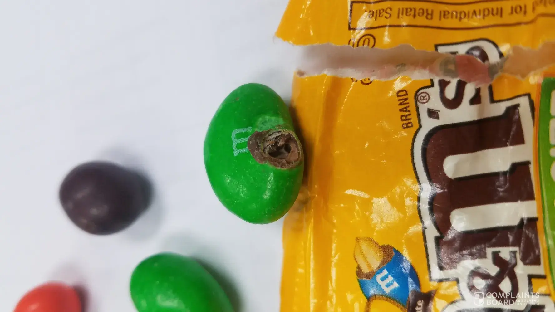 Yesterday I bought a bag of M&Ms and today the 22nd when I opened it I discovered at least one M&M that was old and moldy. I do not dare to eat the others, as I do not know if they also could be old. The date of the package has not expired (can provide more pictures if needed).