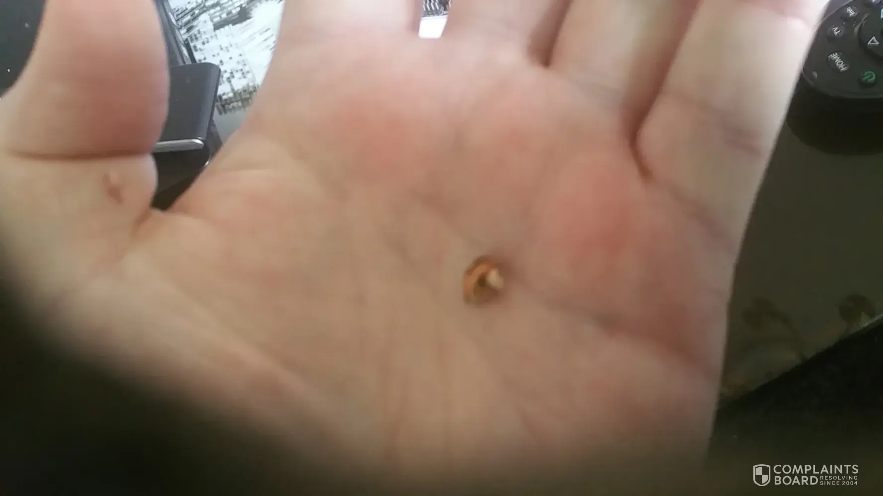 I found what it felt like a tock in my m&ms. I am not happy brought quite a few packs and in one of them was this(shown in photos) and it nearly broke my teeth I have a chip in them i am lucky I am on benifits otherwise would have coated me to get my teeth looked at if there is anything you can do please let me know and at the bottom is my email.