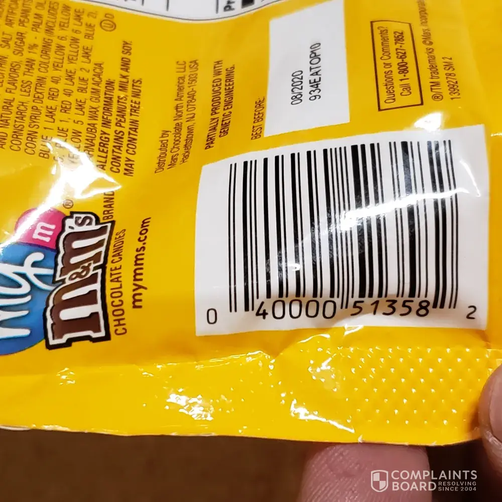 Yesterday I bought a pack (10.70 OZ) of Peanut M&M from Target (Temple, Texas) . The information on "Best Before " are 04/2020, 918CA4CW29, 03:00