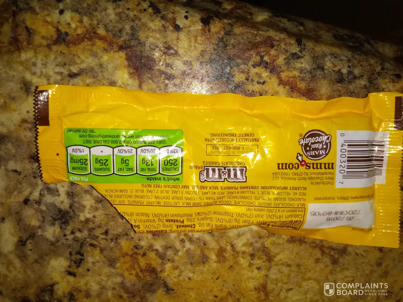 Why Am I having to pay just to file a complaint that is just ridiculous I purchased your product a party bag of peanut butter m&m, s they have a funky tasted like machine oil you can't eat these things this is the first time I have ever had this problem the batch #923BTCLV18 the date is 06/20/20 barcode [protected]
