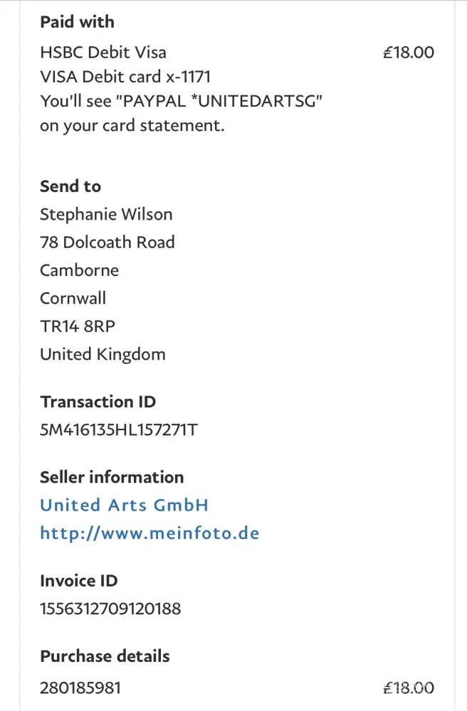 I also notice that although the company states in their description that they are the" No 1 Rated Canvas shop in the UK" and use a UK domain name, they are in fact in Germany, and they use a phone number that costs 20p per minute.