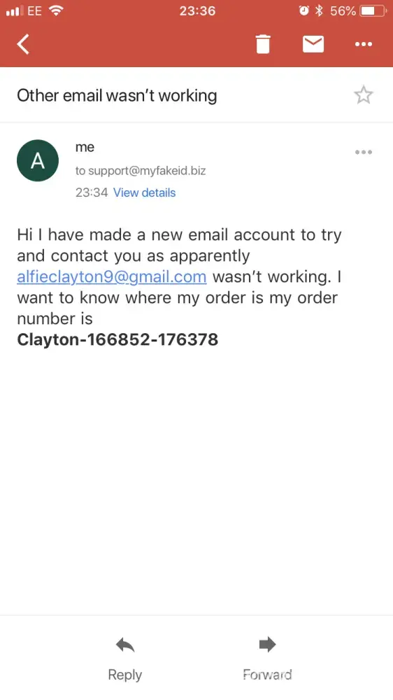 Hi I defiantly sent emails from that email address I just sent you another email via a different email alfieclayton101@gmail.com so we can talk privately I have sent you my order number. Let me know if that has come through?