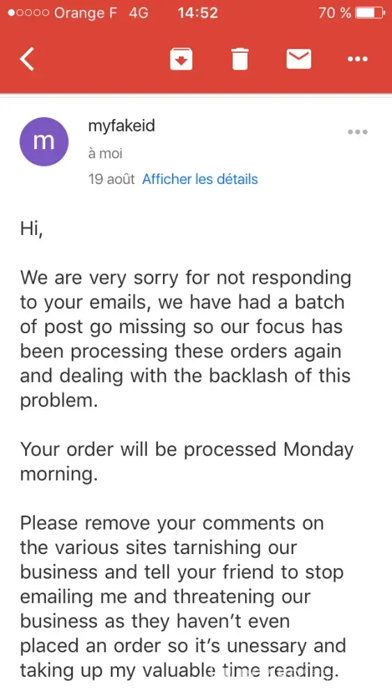 After having listened for more than 2 month to all kinds of evasive comments from MYFAKEID.biz including