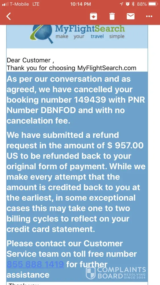 Hi there, I was recently victim to a similar situation and regret every interaction with myflightsearch.com