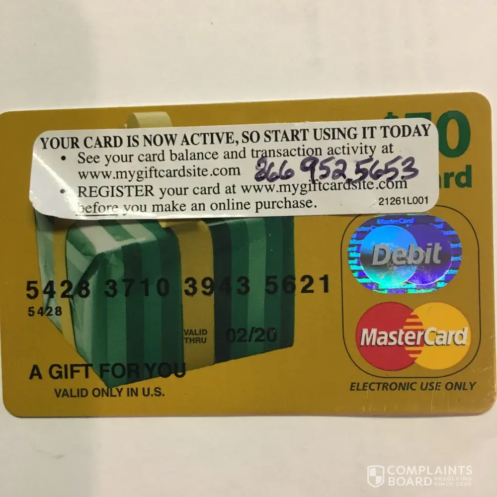 ok. These guys are a total fraud company and I don't even know how to report them to someone official to close them down. They are stealing money from little old ladies. My mother in law purchased a $20 gift card for my son and it never worked. Tried to call the company of which the phone number on the card is incorrect and the recording gives me a new number to call. Every time I call them, they have said they would mail a new card. It never came and this request was made 3 times. Then they said they would escalate the call, but no one ever called. Now I called them today and they said they would only talk to the cardholder who is my college age son and at college. They never told me this before! He certainly doesn't have time for this run around. I was asked which bank they were associated with and they said they could not tell me since I wasn't the card holder! What! I finally am accepting this is not a legit company. I told the girl on the phone, she better look for another job, because this company will certainly get shut down at some point. Not sure how that will work, but they are actually stealing thousands of dollars from unsuspecting customers. We will never purchase one of these credit cards from anyone, not knowing which ones are frauds, and may I suggest that no legit business carry the cards in their stores! I actually wish I bought the card, because I would just go back to the grocery store and complain to them. But alas, I am done dealing with this scam company . But buyer beware. I would not purchase any of these visa type cards anywhere! Just give cash as a gift! This is their phone number: [protected]. They change their story everytime I call. Scammers!