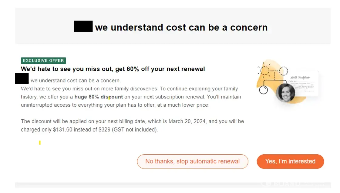 I purchased their DNA Ancestry kit at 39 usd, then they automatically charged me 8X MORE 329 usd the amount for their subscription service that I did not subscribe for. I only found out through my bank statement. When I went to MyHeritage I was shocked to find out I had a subscription I was unaware of. I immediately cancelled and MyHeritage tried to keep me on a subscription I did not even subscribe for in the first place (see image). They stole from my bank account using my credit card details from my purchase of the kit. When I tried to reach them via their website, I could only access a bot. Then I got a ticket number but nobody responded. It has been weeks. I tried to remove my credit card details but I cannot find them in my account which means the company has it stored at the back end and are illegally stealing from customers. Apparently, this theft happens to everyone around the world as there are forums on end with people being shocked that money is taken from their bank acct without their awareness. This is horrible company practice, malicious and illegal.