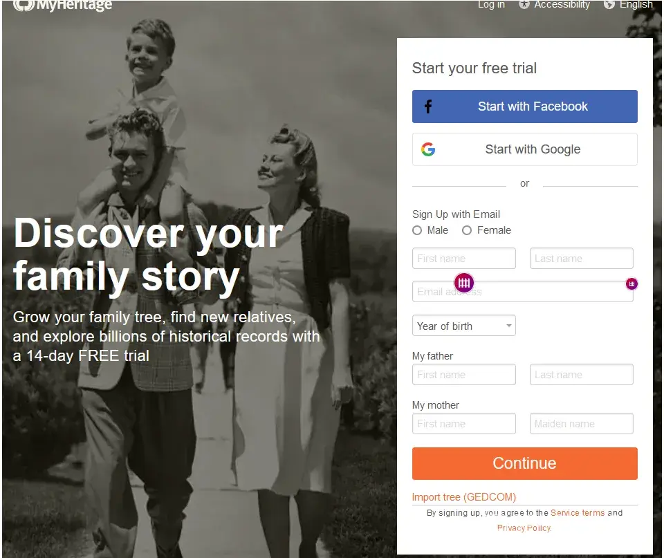 I live in the UK. I was thinking of checking on UK friends who I have not seen for fifty years and I clicked on the MyHeritage website. I had to enter my email address to try my search but I realised it was no use for me and I left it. I did not register and did not ask for any further usage.
