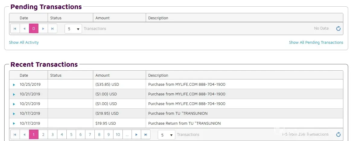 MyLife Credit card fraud theft