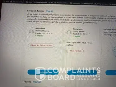 Hello! Both my partner and I have harassing reviews on your website from his ex wife. We both have one from Oct 25, 2017, and he has a second one from her June 26, 2019.