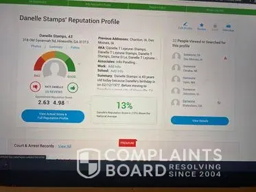 I requested to have my info removed and sent the required information. I was told it would be removed. A month later I get an email saying someone looked at my reputation. Low and behold, I pull it up and it's back up. This is a scam and complete bull. This company needs to be shut down. When someone requests to have their information removed from the site, it should be removed. I'm going to seek legal counsel since they do not feel it's important to research their information