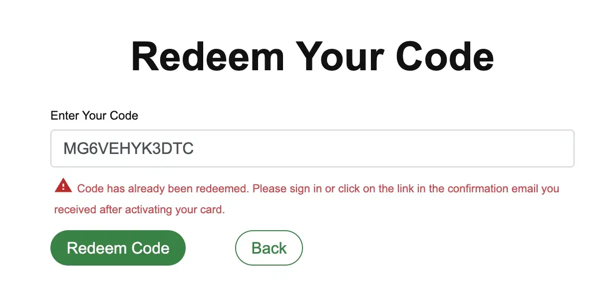 Desired outcome: To activate the card so I can buy with it or get my money back