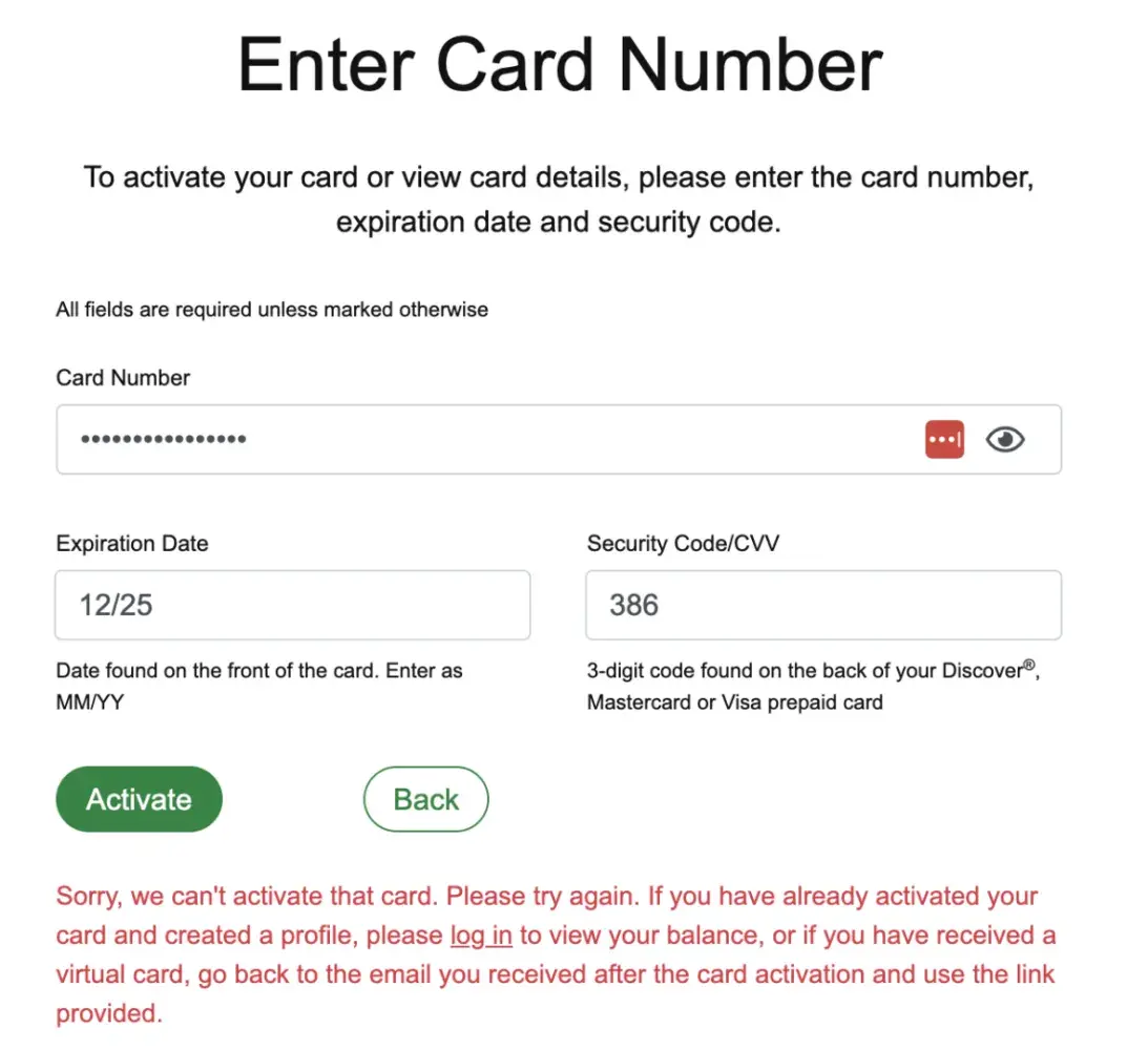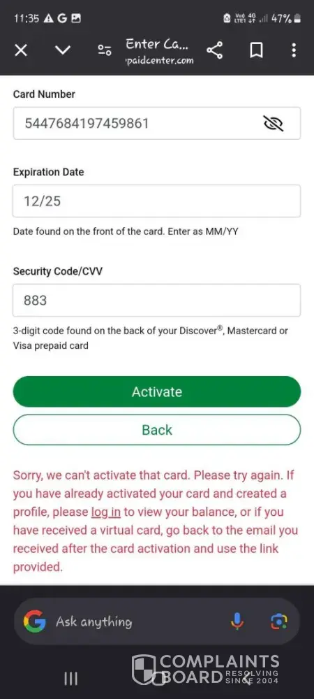 Activated Card Declined Everywhere – Misleading and Unusable I activated my prepaid card, but it has been declined at every location I’ve tried to use it. This is incredibly frustrating and feels like a scam. To make matters worse, the card comes with a very short expiration period—after which the funds are lost (conveniently for the issuer, not for...