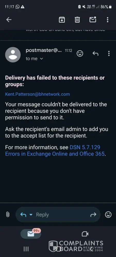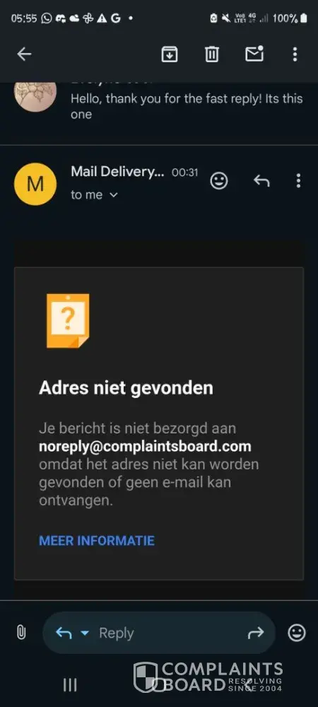 Verified customer This complaint was posted by a verified customer. Learn more