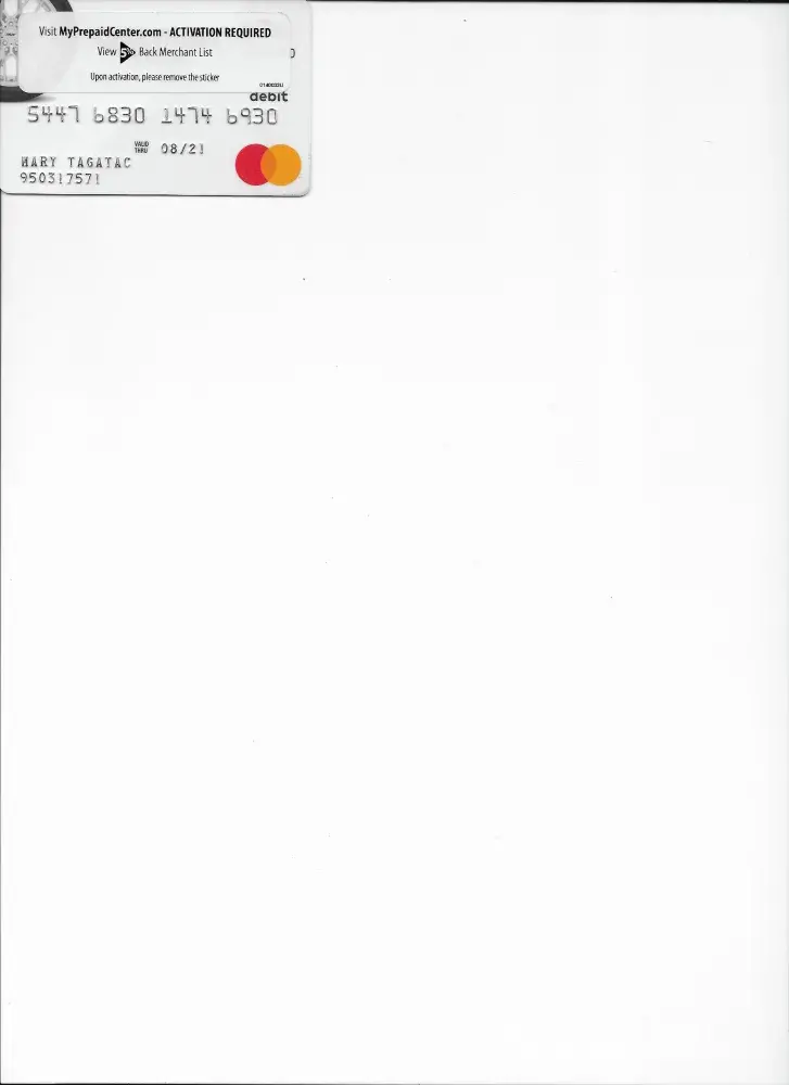 Desired outcome: I want my card activated so I may use the $20 on the debit card
